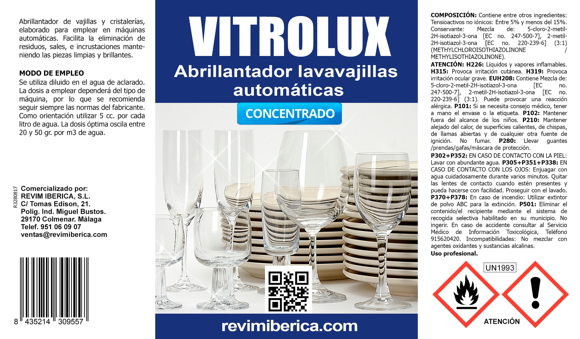 VITROLUX - Abrillantador de vajillas concentrado para máquinas automáticas.