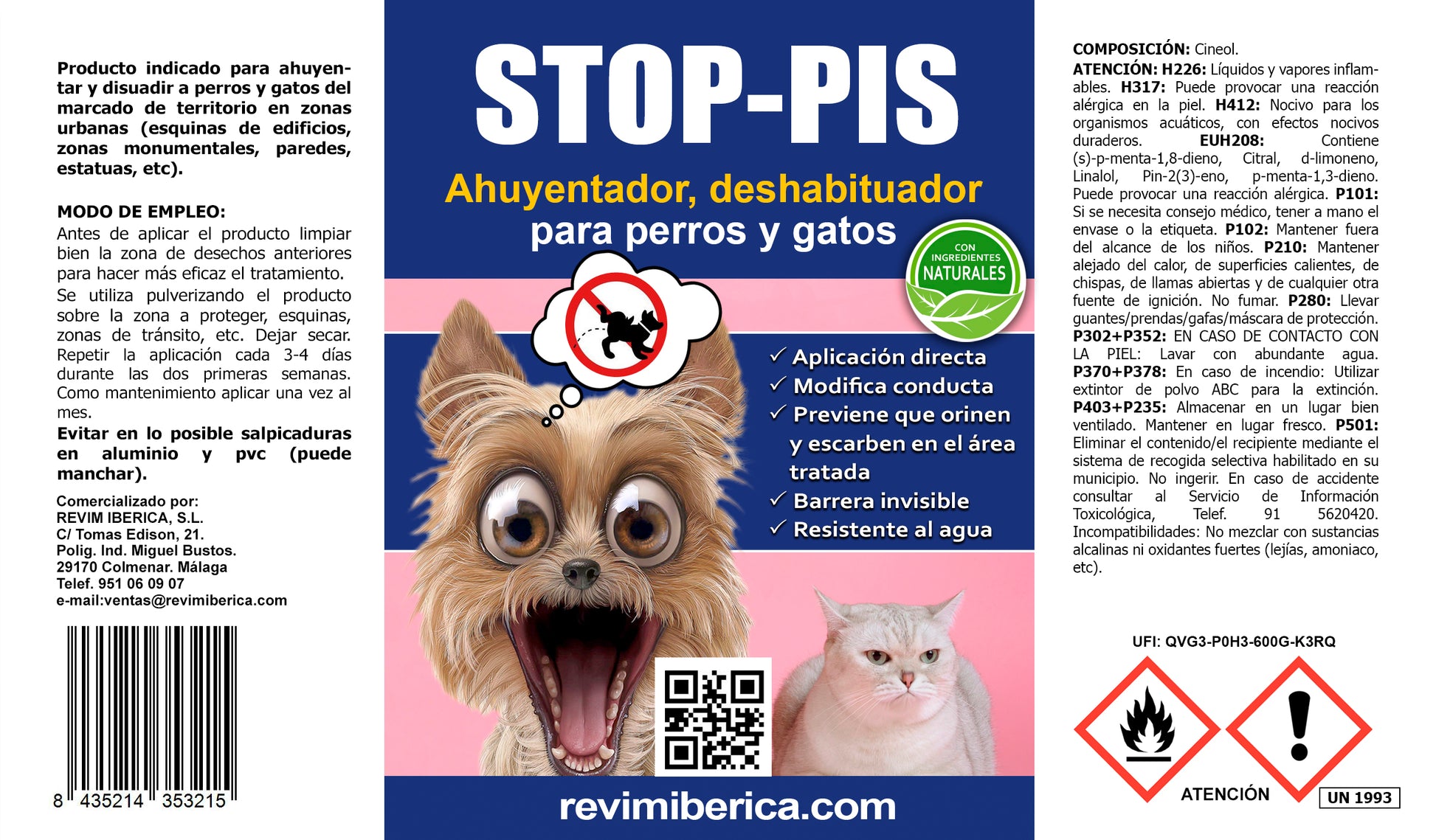 Este spray educativo para perros y gatos Stop-Pis tiene una efectivo composición con eucalipto y caléndula, aromas que nos les gustar y ayuda a que se alejen de la zona. Además, es doble acción, ya que el spray repelente impregna bien las superficies y sirve como repelente y agente limpiador.